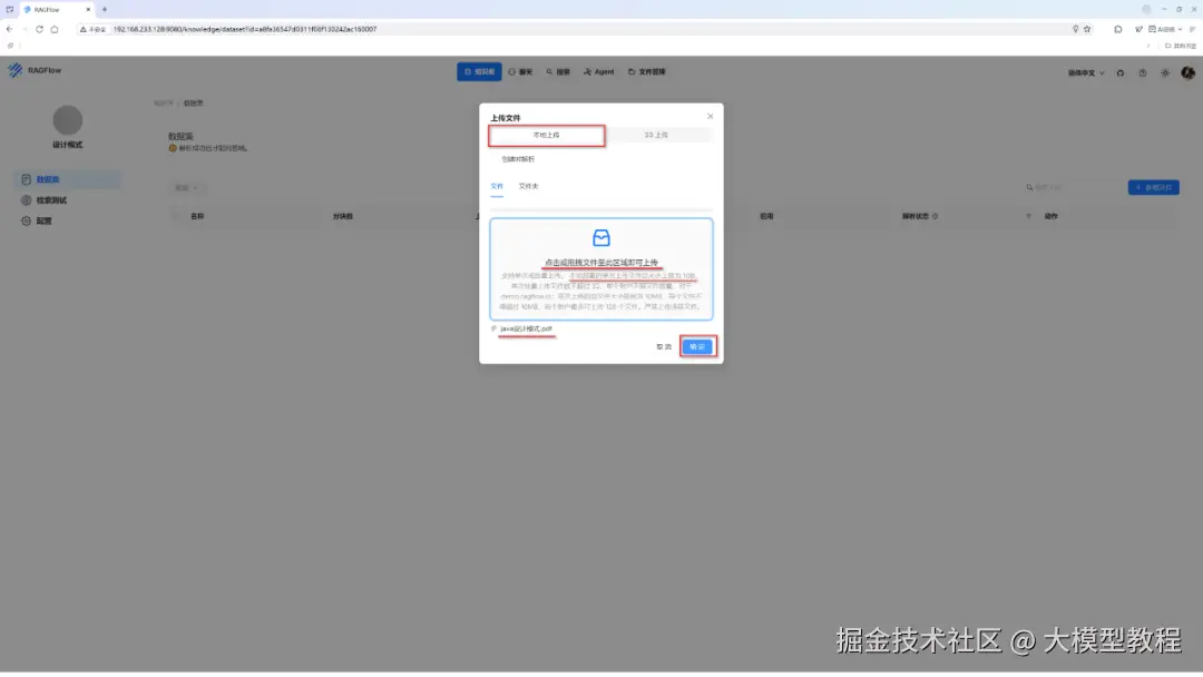 这里,以构建一个自定义名称为“设计模式”的本地RAG专属知识库为例,来演示说明。