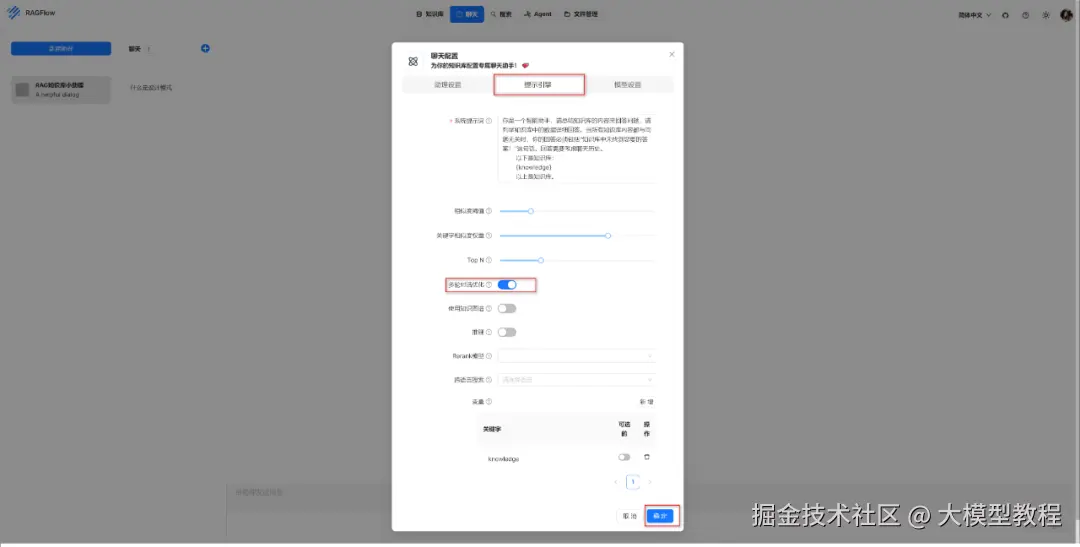 很显然,大概率是因为我们未启用Rerank模型选项所导致的。Rerank模型负责二次精排,显著提升相关性。