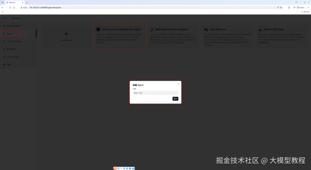 接着,我们选择 RAGFlow 内置的一个基于知识库检索问答Agent模版,如下图所示: