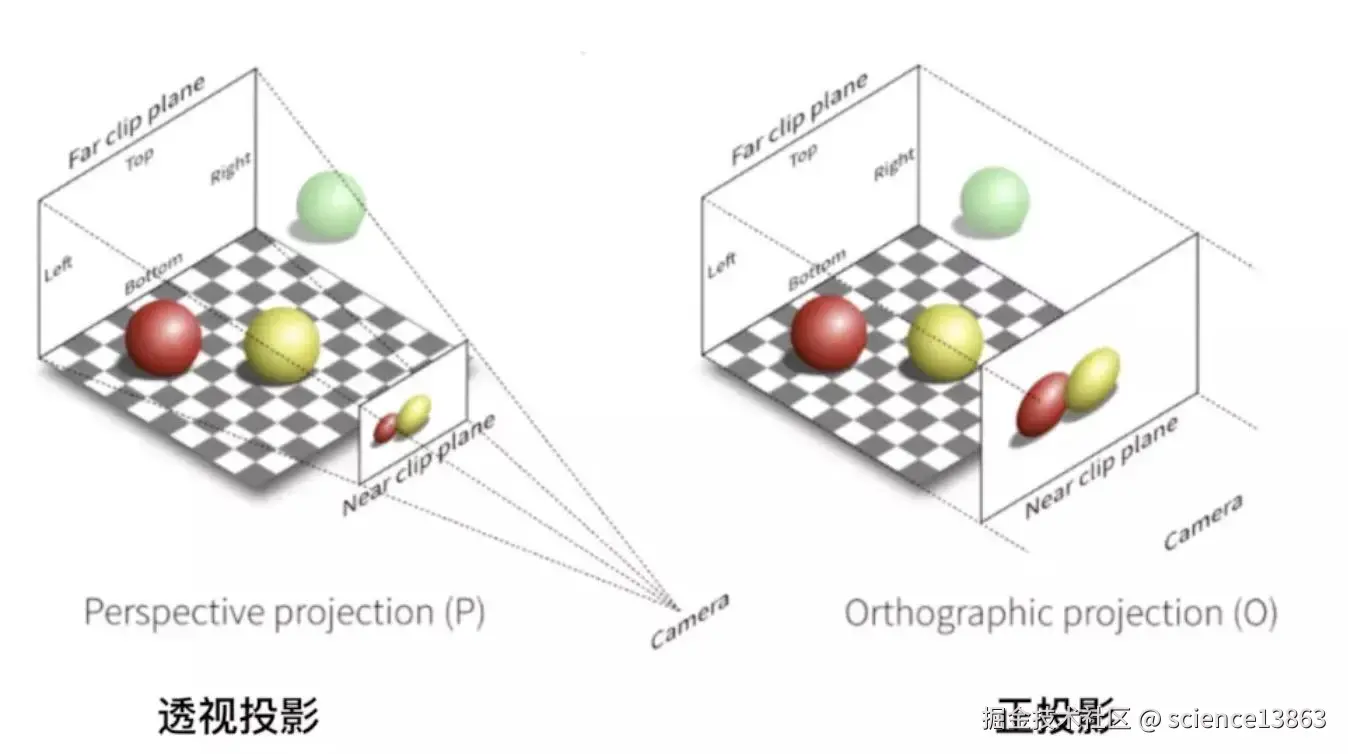 另外一种是正交投影, 一般用于模型展示,正常情况下它的x/y值都不会改变。
