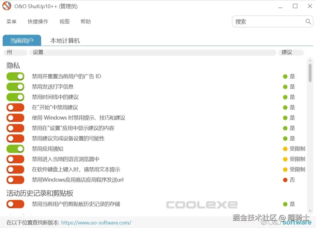 O&O ShutUp10是一款专注于Windows隐私与安全的免费工具,提供大量系统设置开关,帮助用户一键关闭Windows 10/11中不必要的遥测、数据收集和广告推送功能。软件界面直观,操作方式清晰,适合注重隐私和系统性能的用户使用,无需安装即可运行。