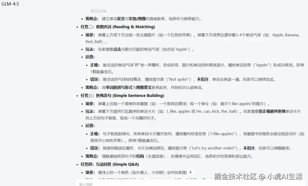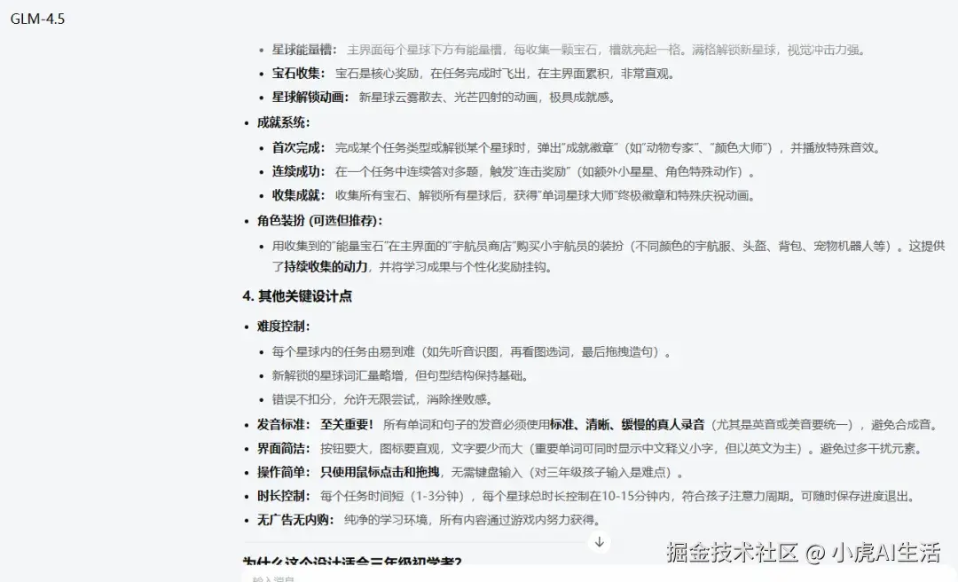AI的反馈快得惊人,几秒钟后,一个名为“星际单词探险家”(Word Explorer in Space)的游戏方案就出炉了。
