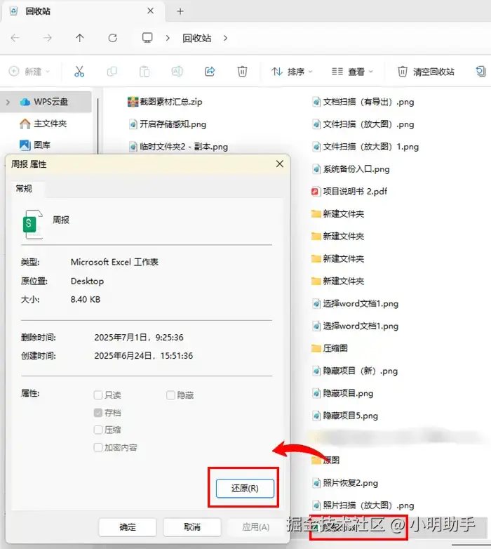 步骤2: 选中文件后,点击打开文件的页面,再点击【还原】。