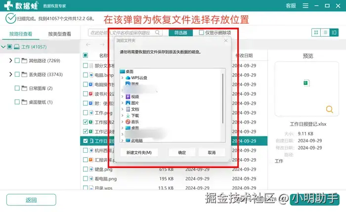 步骤3: 在【浏览文件夹】的窗口中选择合适的存放位置,点击【确定】。