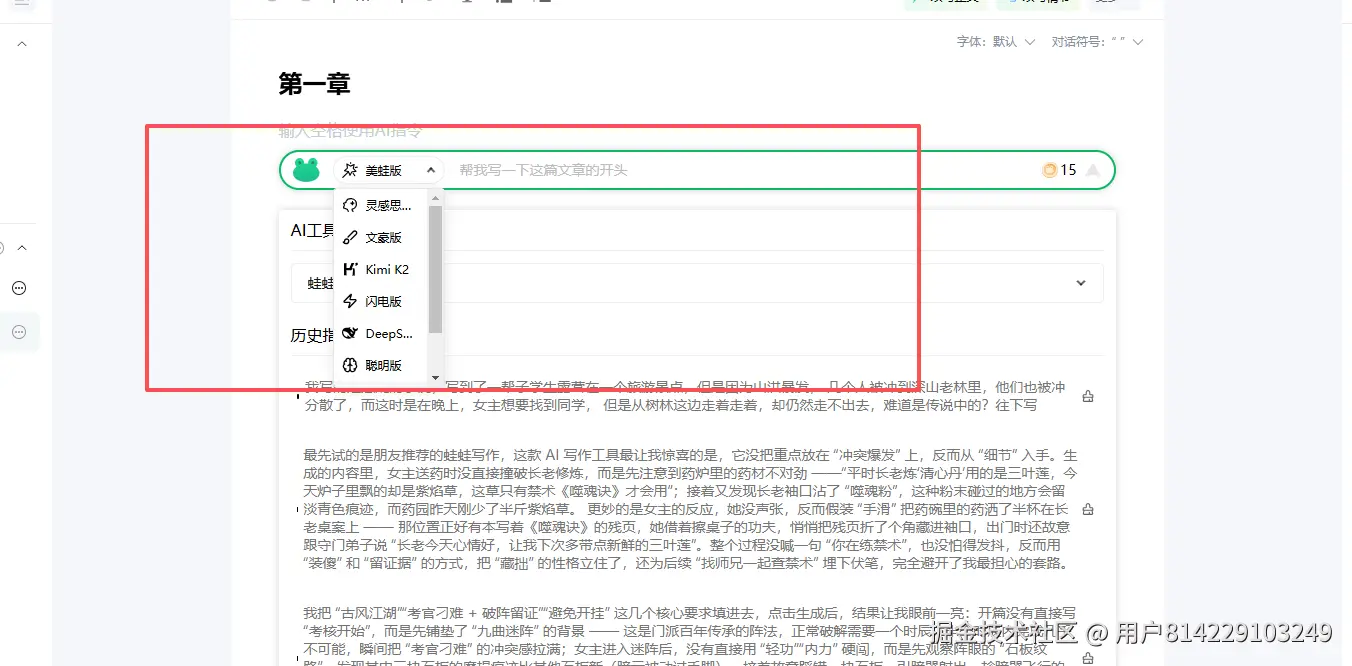 缺点:完全没有针对网文场景的适配,写出来的小说片段很“工具感”,没有爽点节奏。
