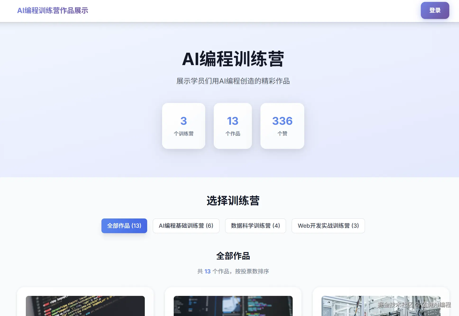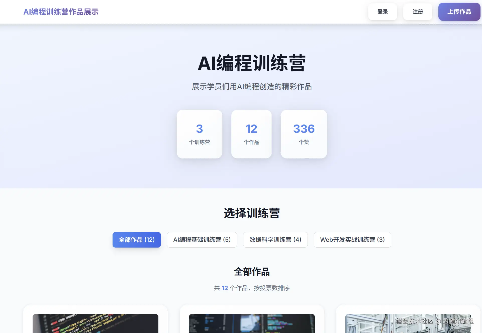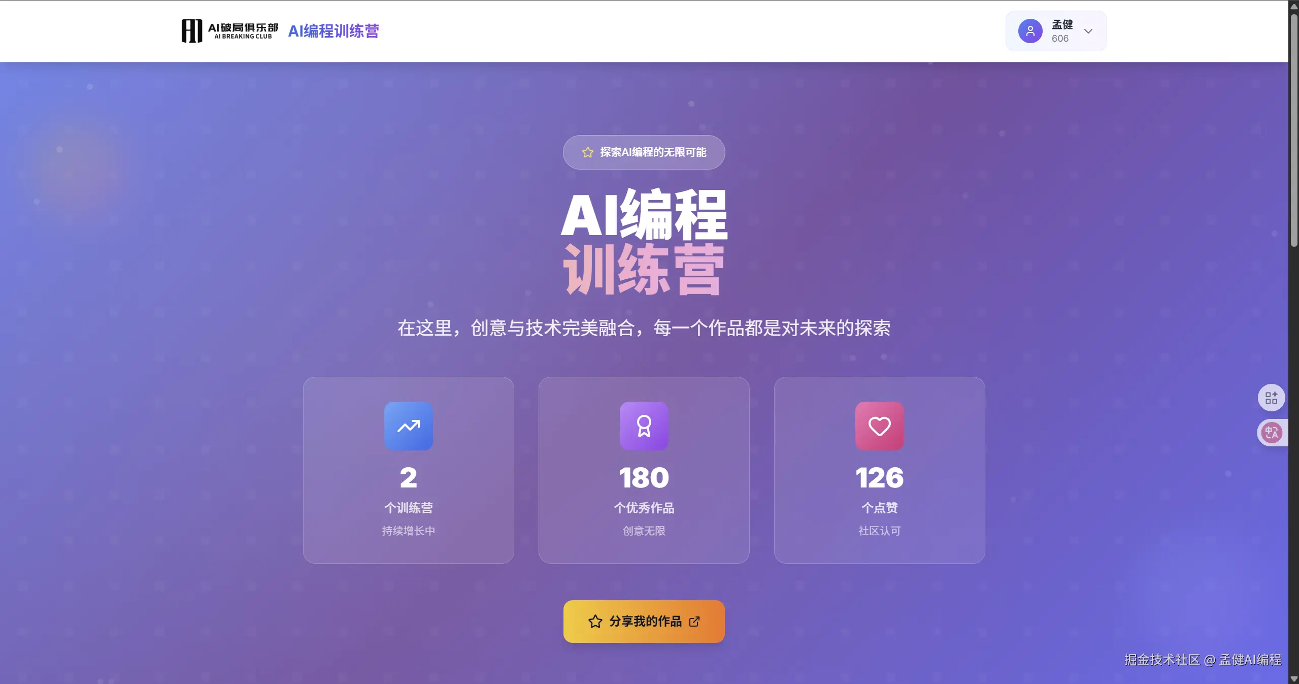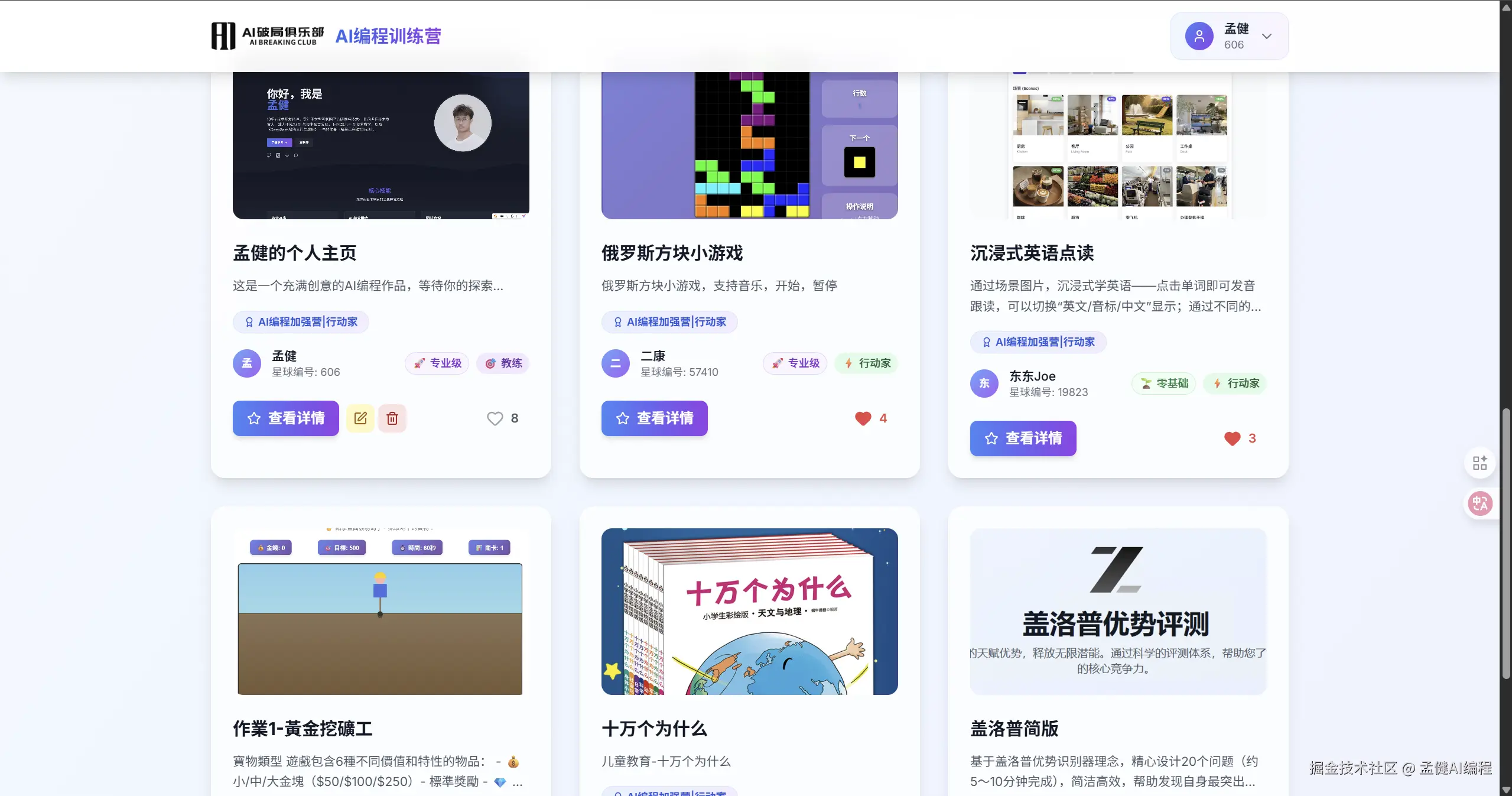 背景:我在AI破局俱乐部这个社群担任AI编程训练营的教练,我希望做一个站点,用来展示学员通过AI编程完成的作品。\