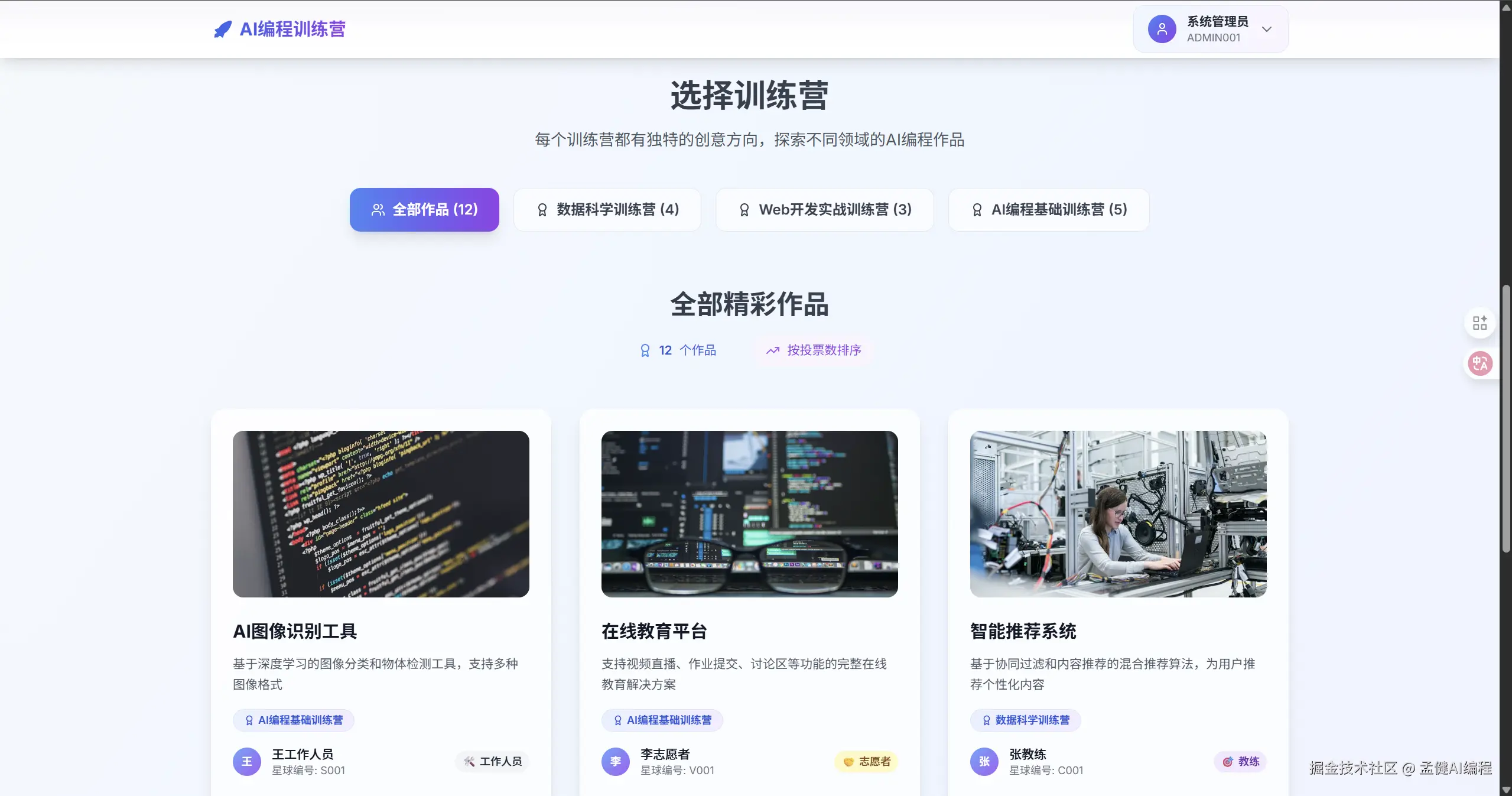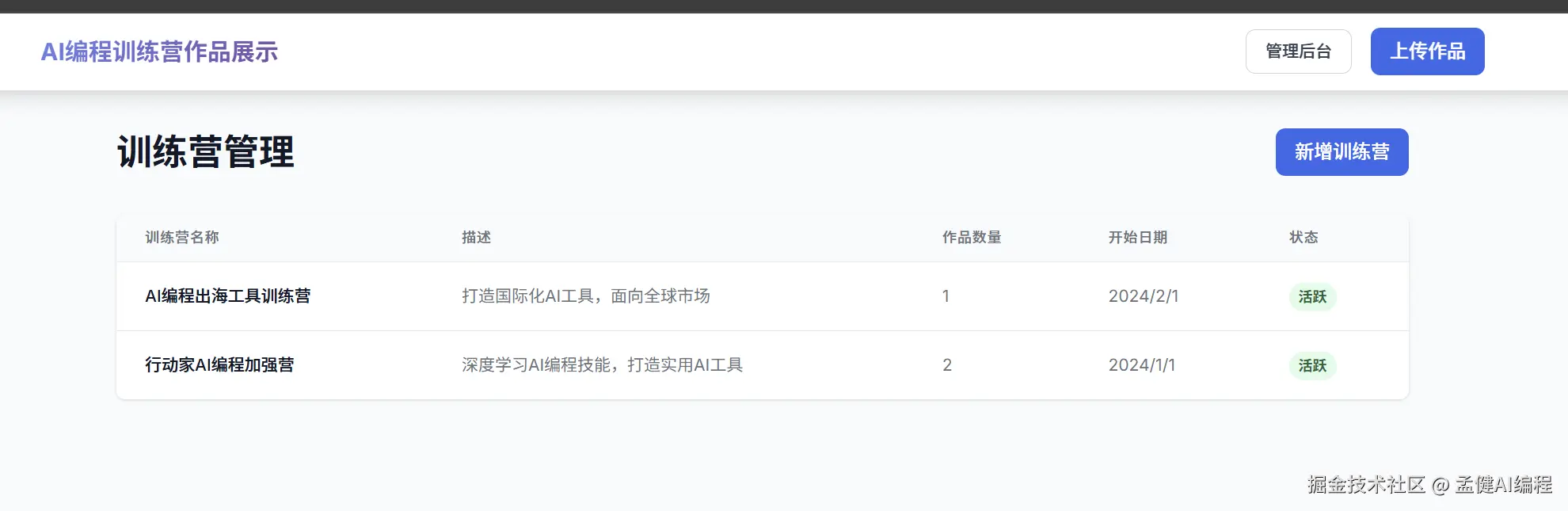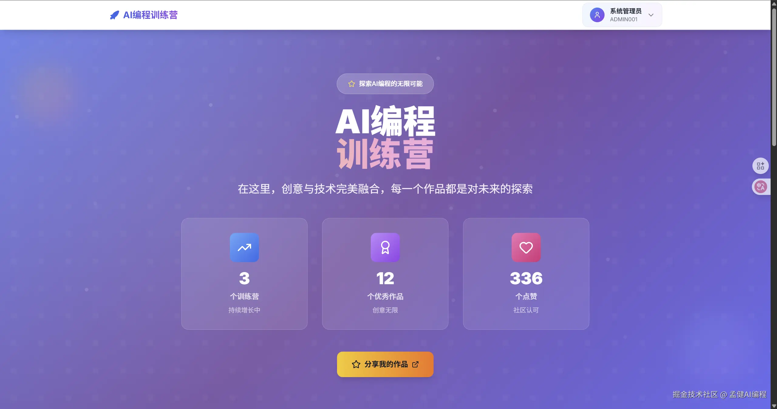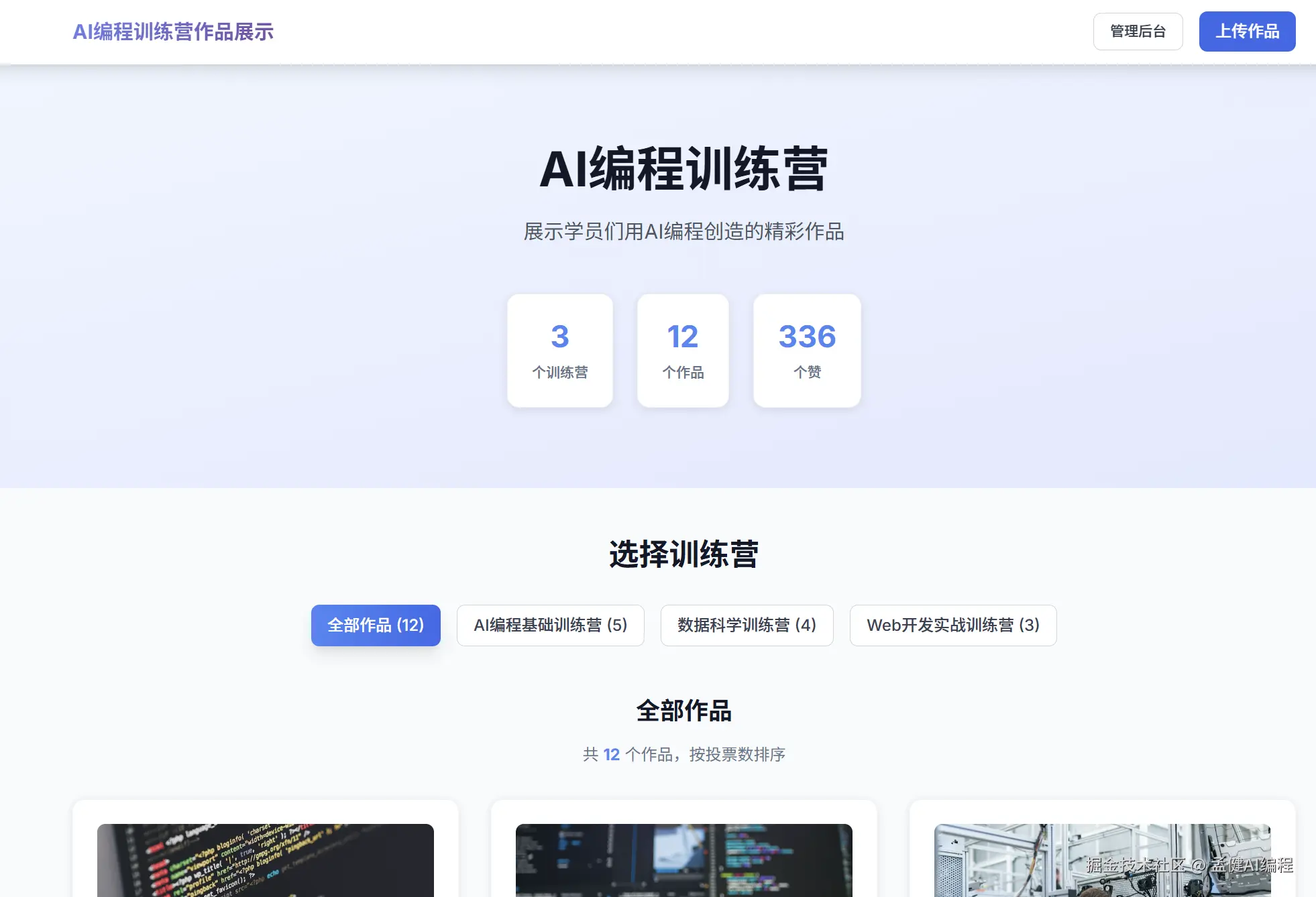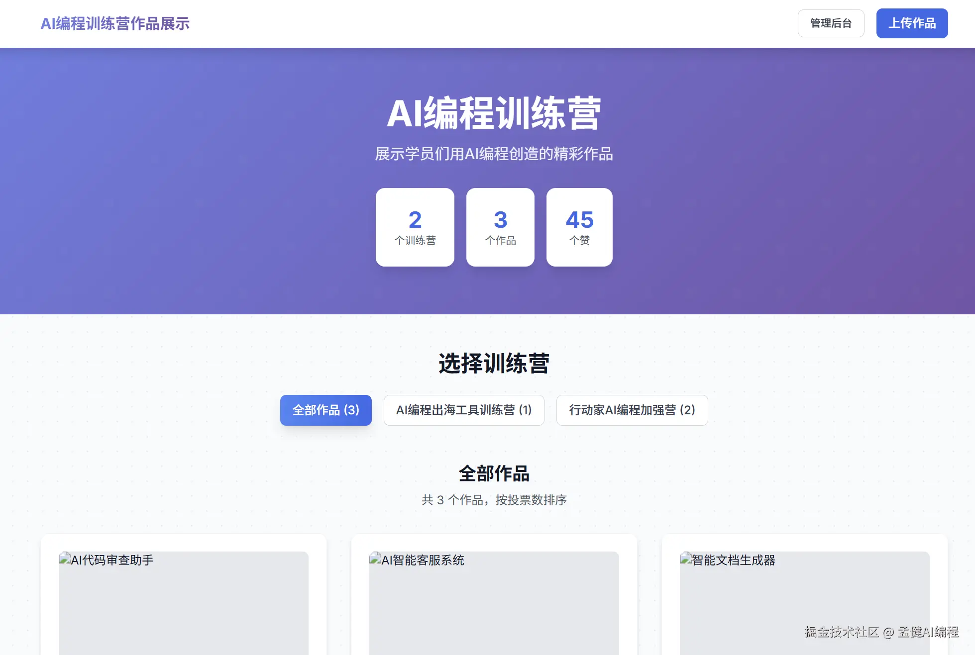 背景:我在AI破局俱乐部这个社群担任AI编程训练营的教练,我希望做一个站点,用来展示学员通过AI编程完成的作品。\