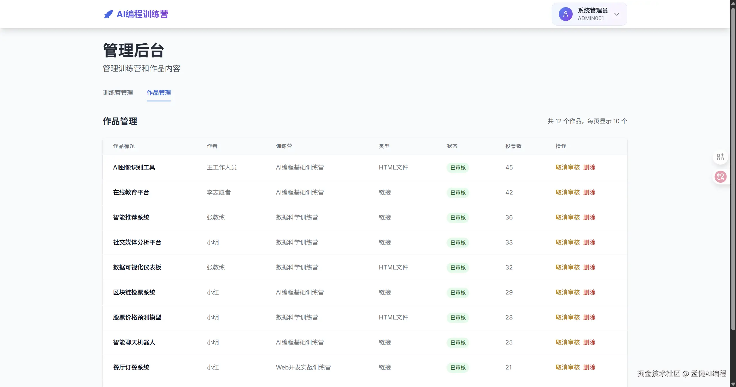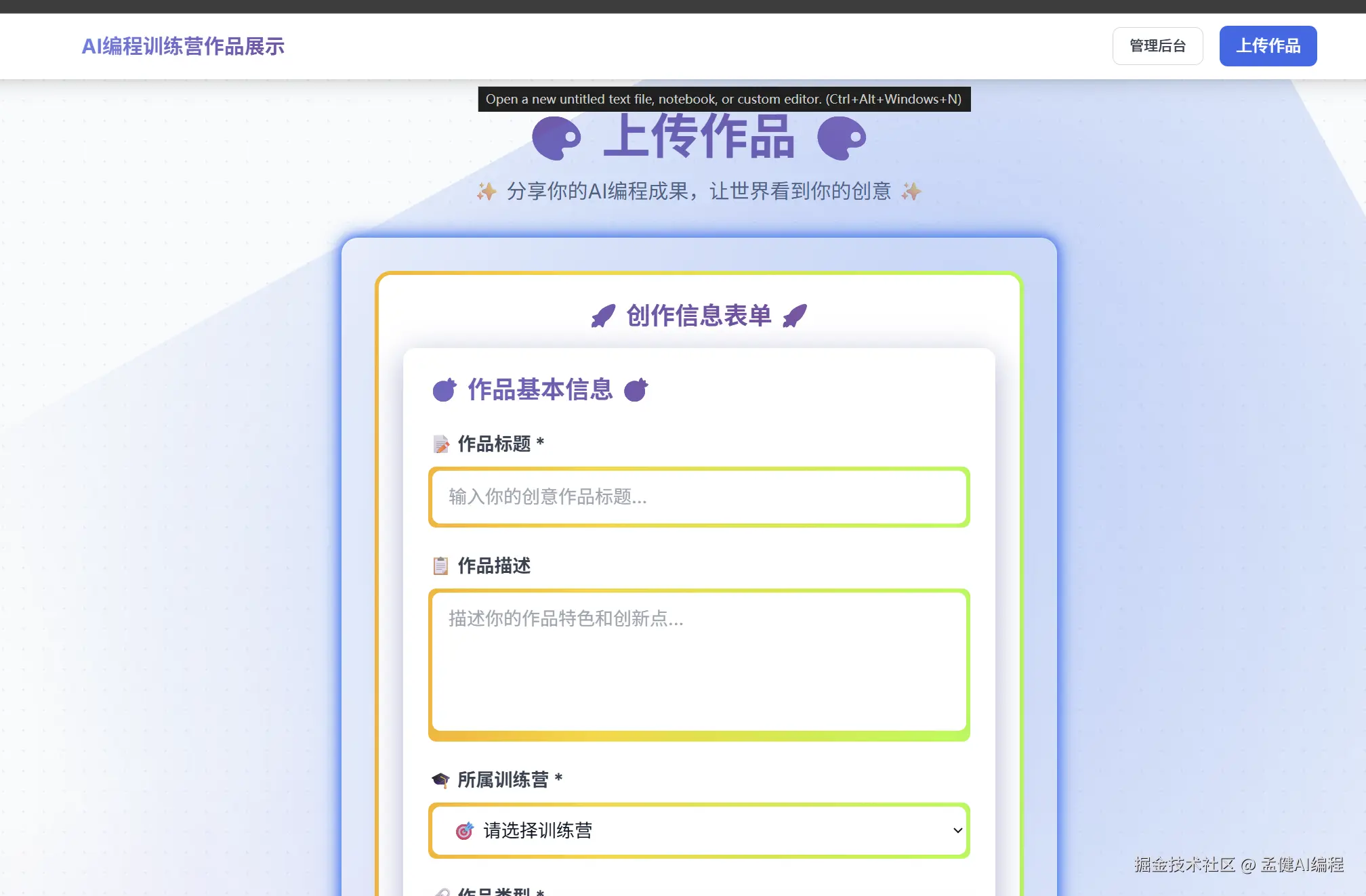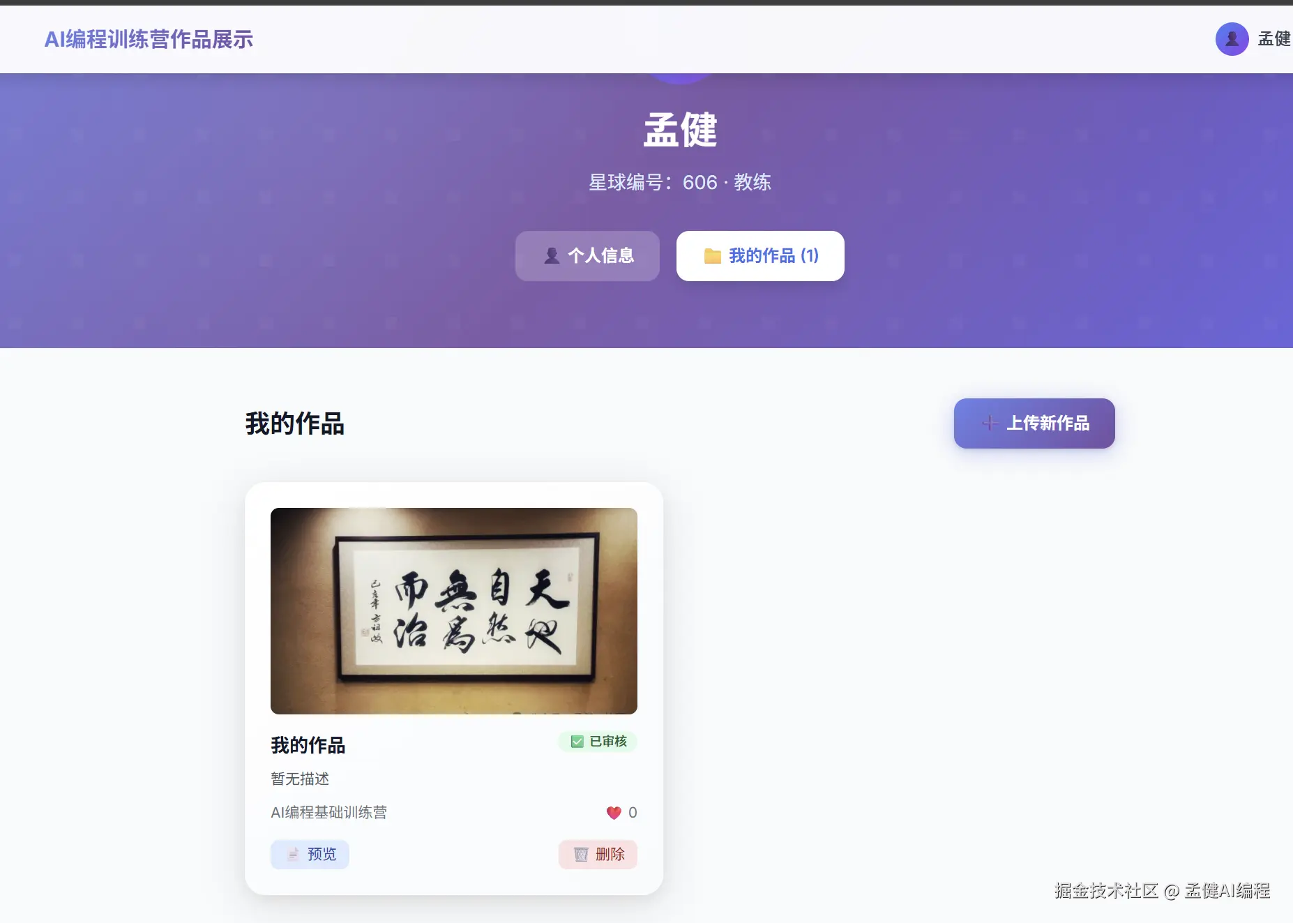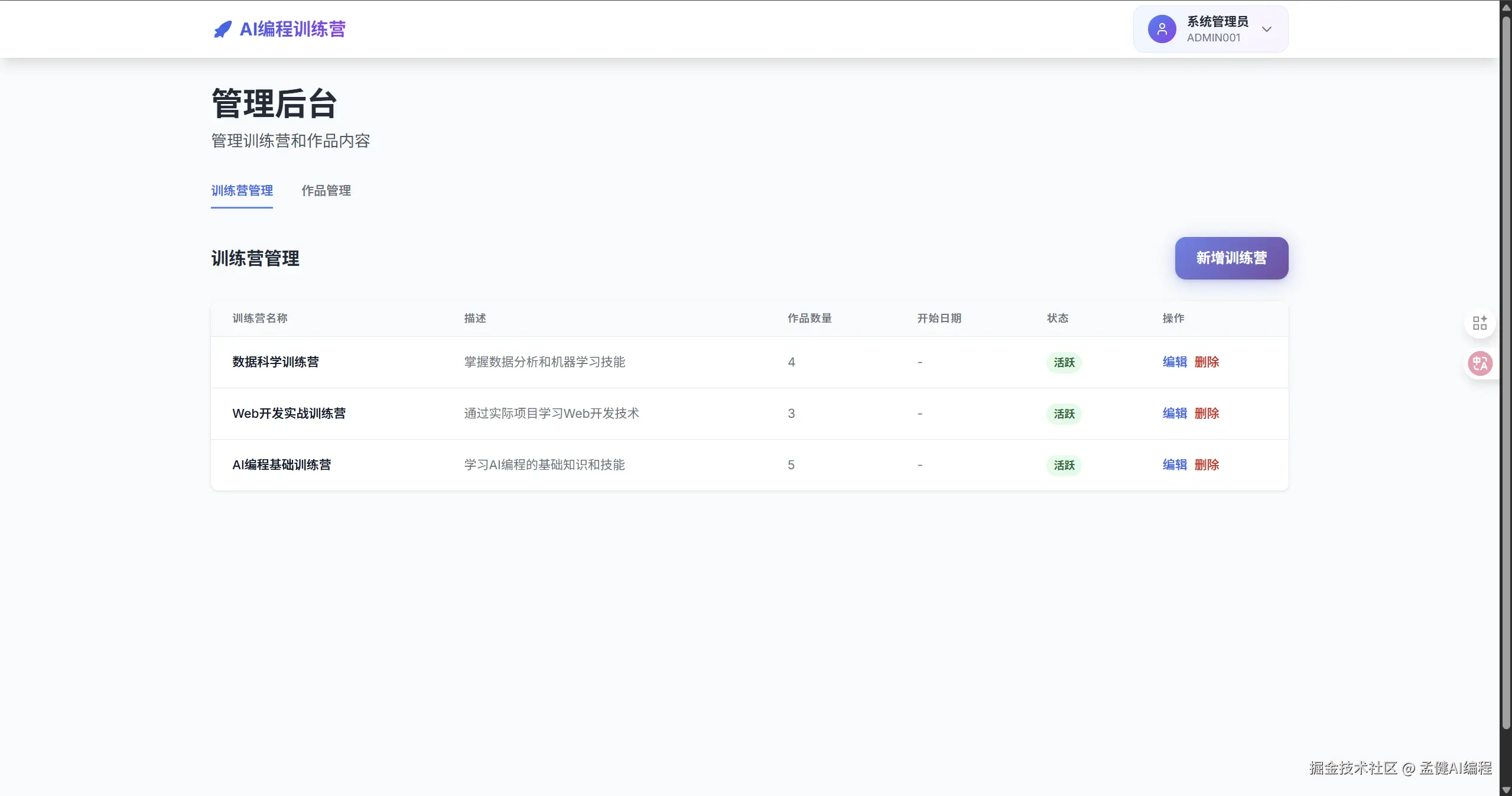 背景:我在AI破局俱乐部这个社群担任AI编程训练营的教练,我希望做一个站点,用来展示学员通过AI编程完成的作品。\