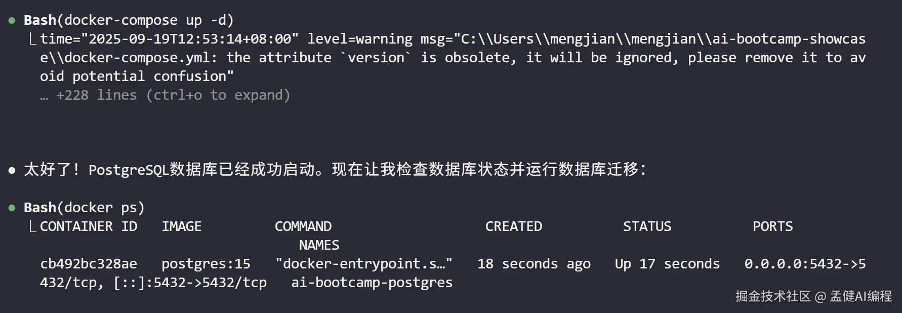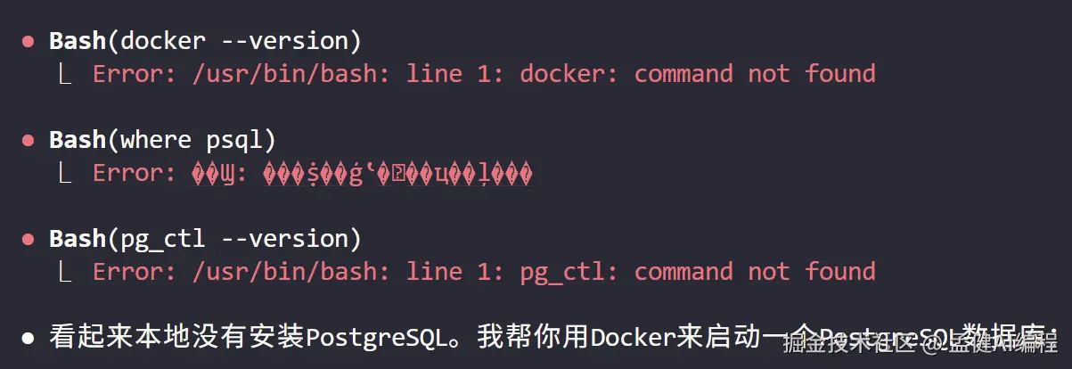 因为我这台电脑上没有安装postgresql,所以我直接丢给cc去启动,顺便它还能帮我把本地的数据库环境配置好: