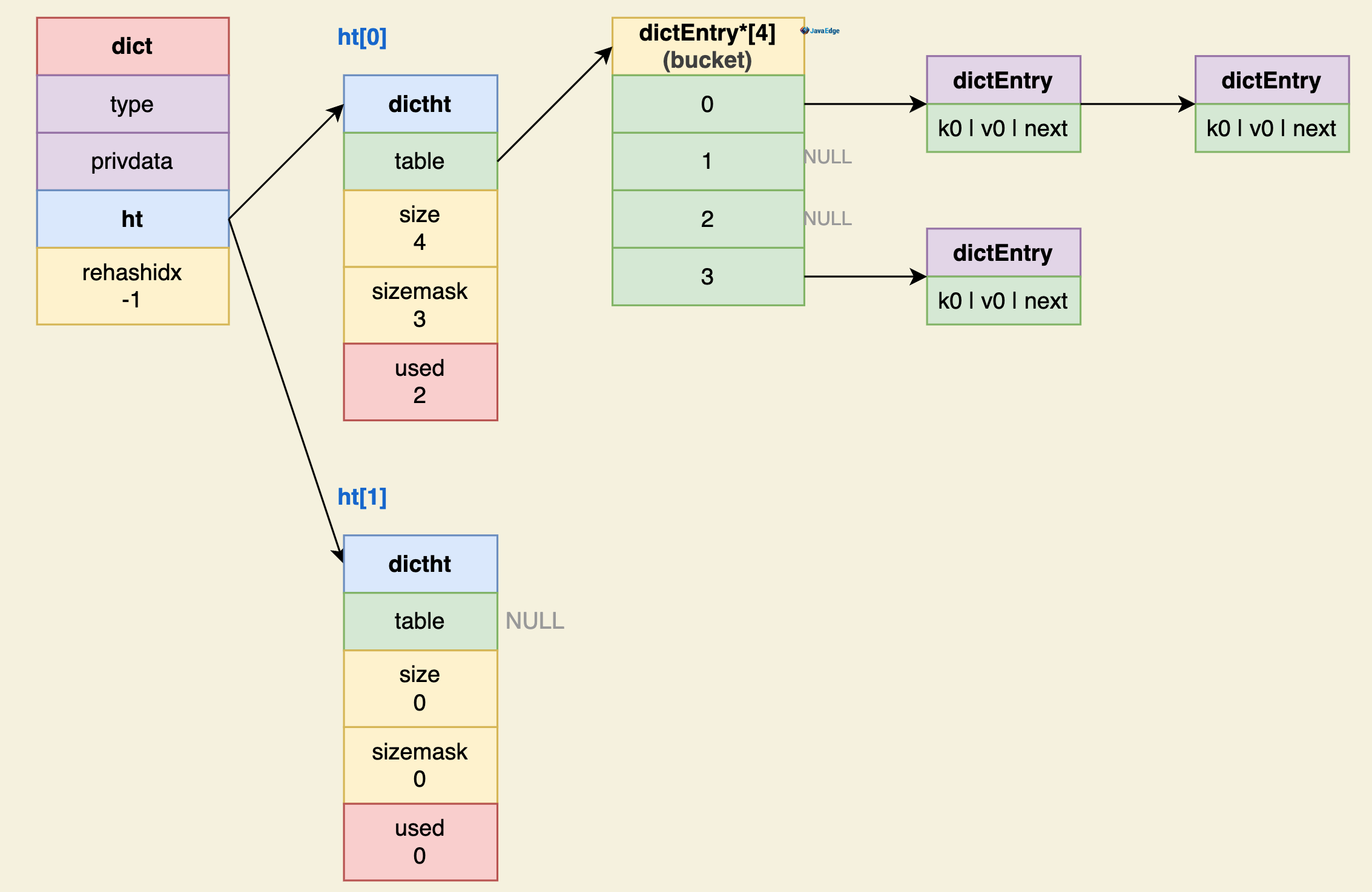 // 编码方式:这些结构化类型具体实现方式,同一类型可有多种实现。如string可用int实现,也可用char[];list可用ziplist或链表实现