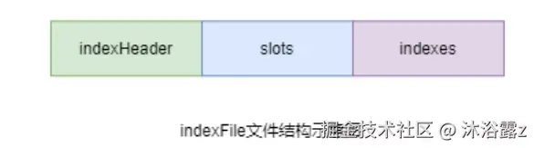 每个Broker都包含一组indexFile,每个indexFile以其被创建时的时间戳命名。 每个indexFile文件由三部分构成:indexHeader,slots槽位,indexes索引数据。每个 indexFile文件中包含500w个slot槽。而每个slot槽又可能会挂载很多的index索引单元。