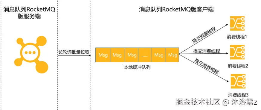 Consumer 使用长轮询Pull模式消费消息时,分为以下两个阶段: