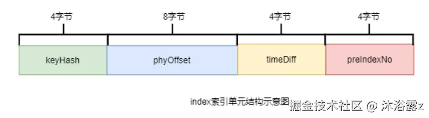 index索引单元默认20个字节,其中存放着以下四个属性: