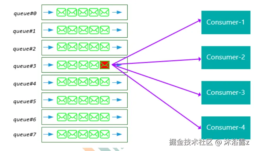 - 通过特定的Queue选择算法选出要存储消息的队列