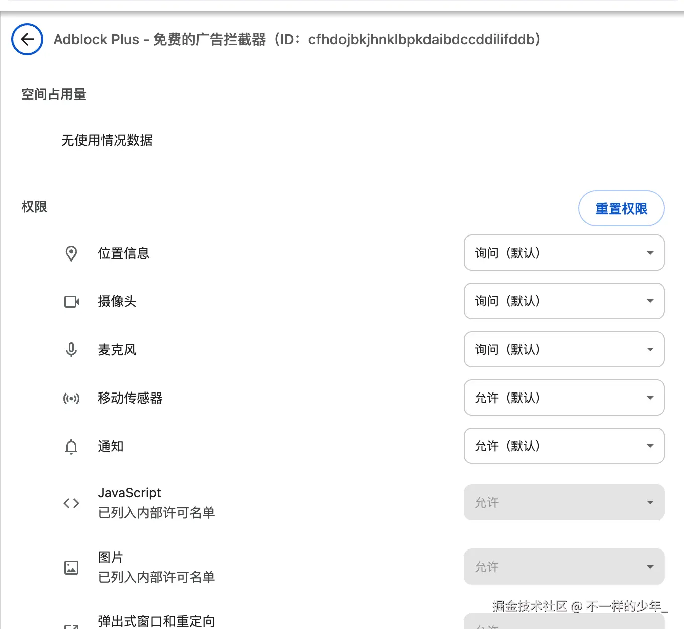 以Adblock Plus为例,这是一个免费的广告拦截器:它的权限可以读取所有网站上的数据