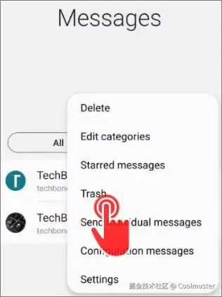 许多现代Android手机,例如三星和华为,都内置了回收站功能。已删除的短信会暂时存储在那里,然后再被永久删除。这是恢复最近删除短信的最快方法。具体步骤如下: