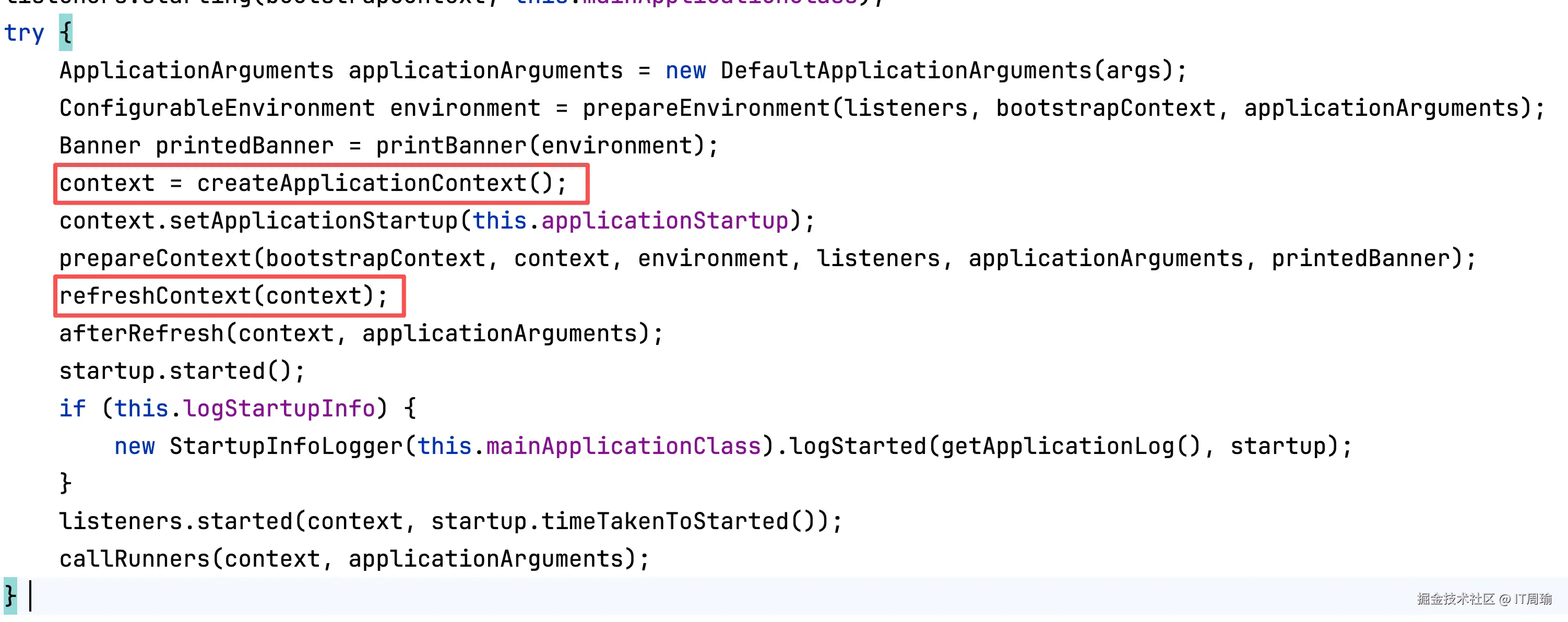 在run()方法里面,SpringBoot会先创建Spring容器,也就是ApplicationContext对象,然后refresh容器。