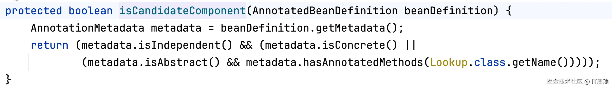 正常来说,一个class上有@Component注解,那么它应该就是Bean了,可是还有第四步,第四步也是一次过滤,它判断的是: