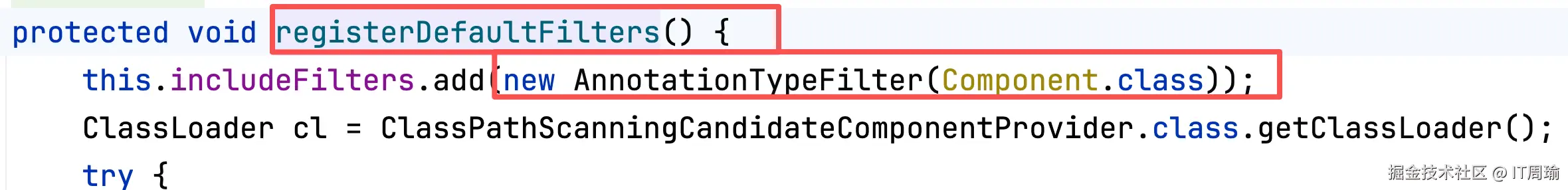 这里的重点是,默认includeFilters中会包含一个@Component注解对应的AnnotationTypeFilter: