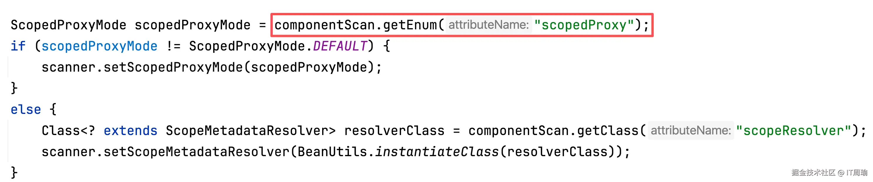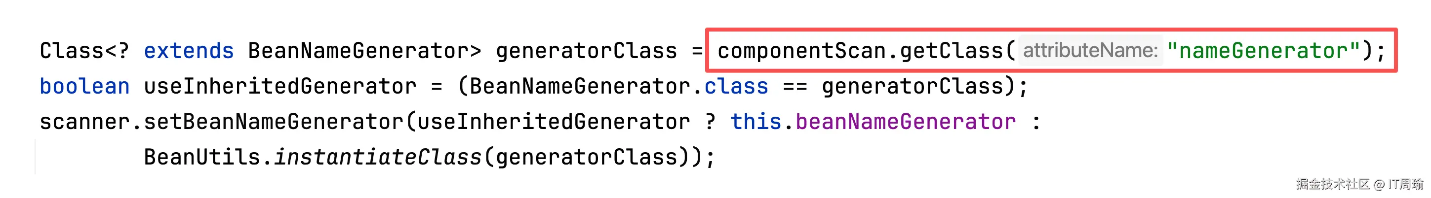 而解析@ComponentScan注解时,会先获取注解中定义的各个属性值或默认值,比如获取BeanNameGenerator: