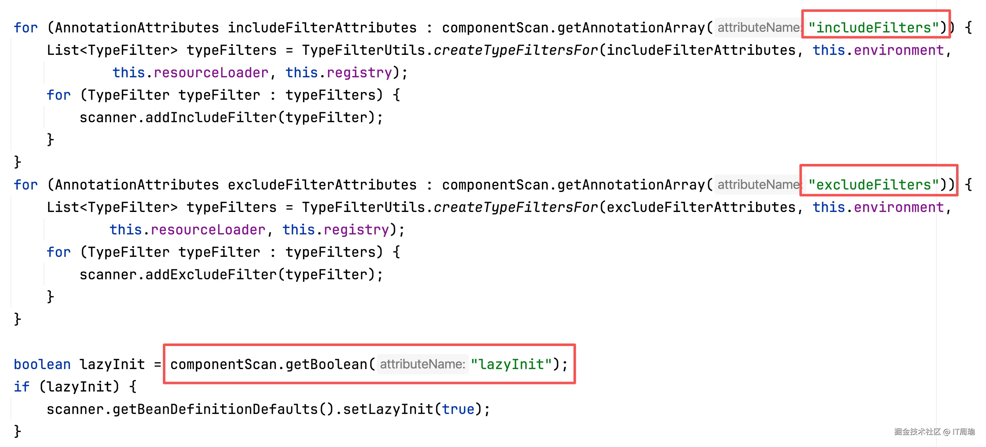 然后是includeFilters、excludeFilters、lazyInit: