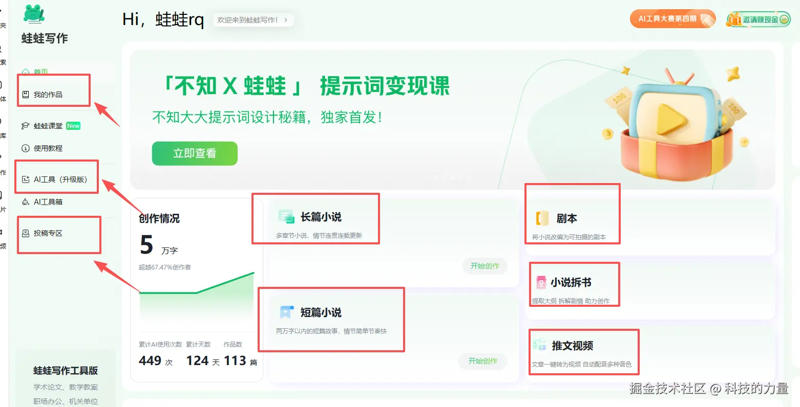 一直以来,我都想创作一篇网文小说,尤其是那种脑洞大开的故事,最近我开始动笔了,尝试写一篇《重生赐婚宴,渣男太子喊我小皇婶》的小说,本来以为我可以很顺利的创作出来,可是写到一半,却进行不下去了,人物的对白太生硬,故事情节不够精彩,这让我很苦恼。实在是没有别的办法了,我只能去尝试一下最近很火的AI写小说工具,开始了我的探索之旅,接下来就给大家分享一下我的使用体验。 蛙蛙写作:网文创作的得力助手 蛙蛙写作是由杭州引力智航科技有限公司打造的一款AI智能写作工具,它的产品负责人万磊是一位连续创业者,还是前腾讯高级产品经理,参与过现象级软件《全民K歌》的打造,他丰富的创业经验,让他更加了解用户的心理以及真正需要解决的问题。