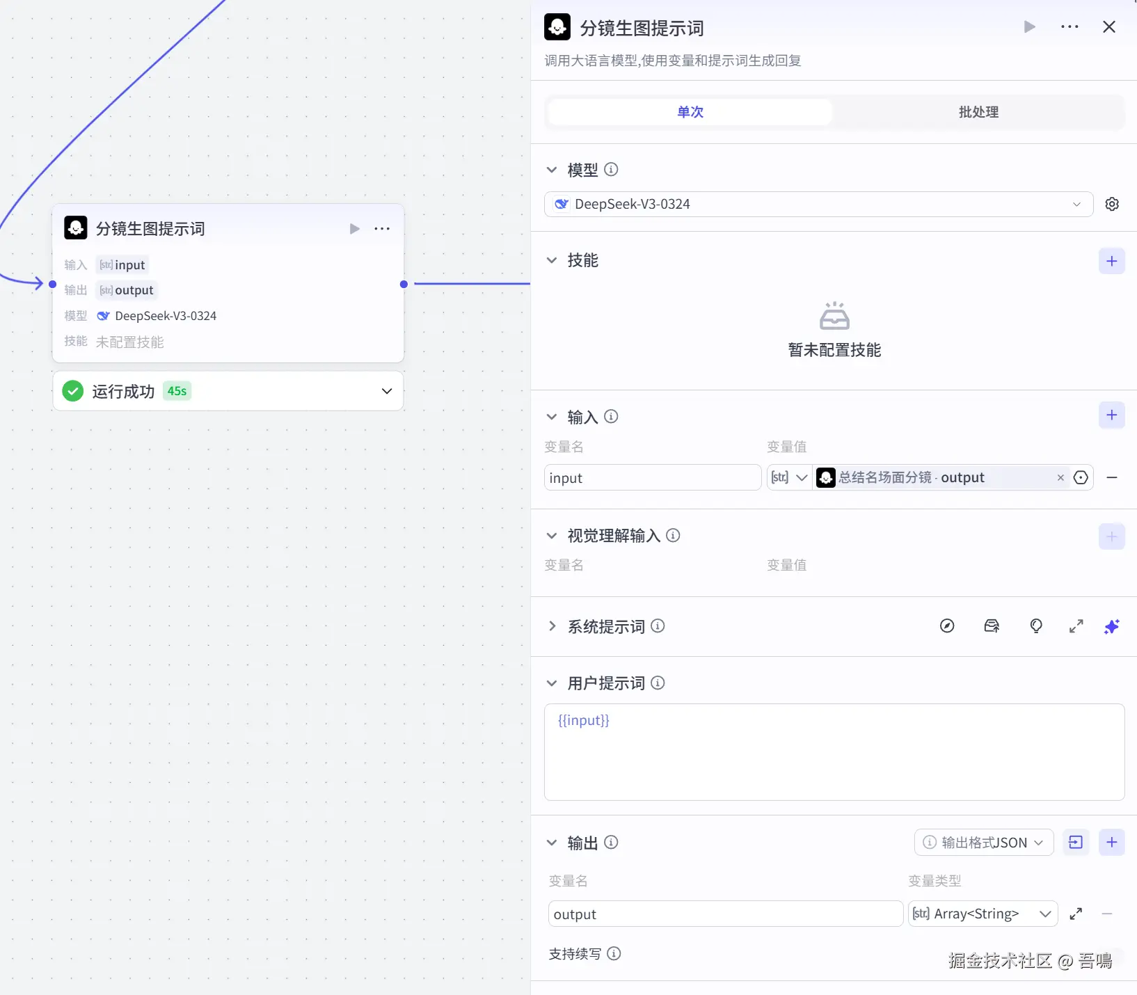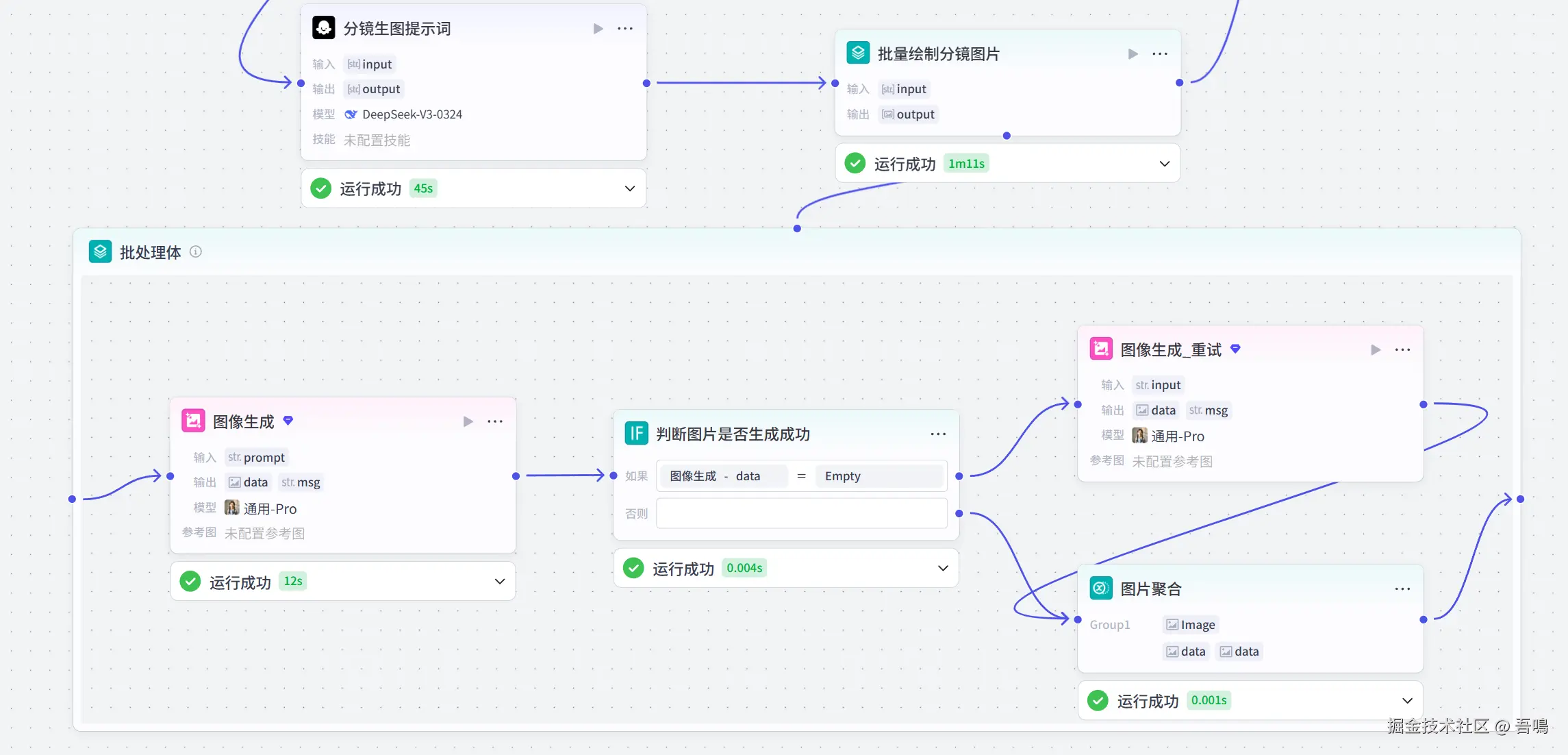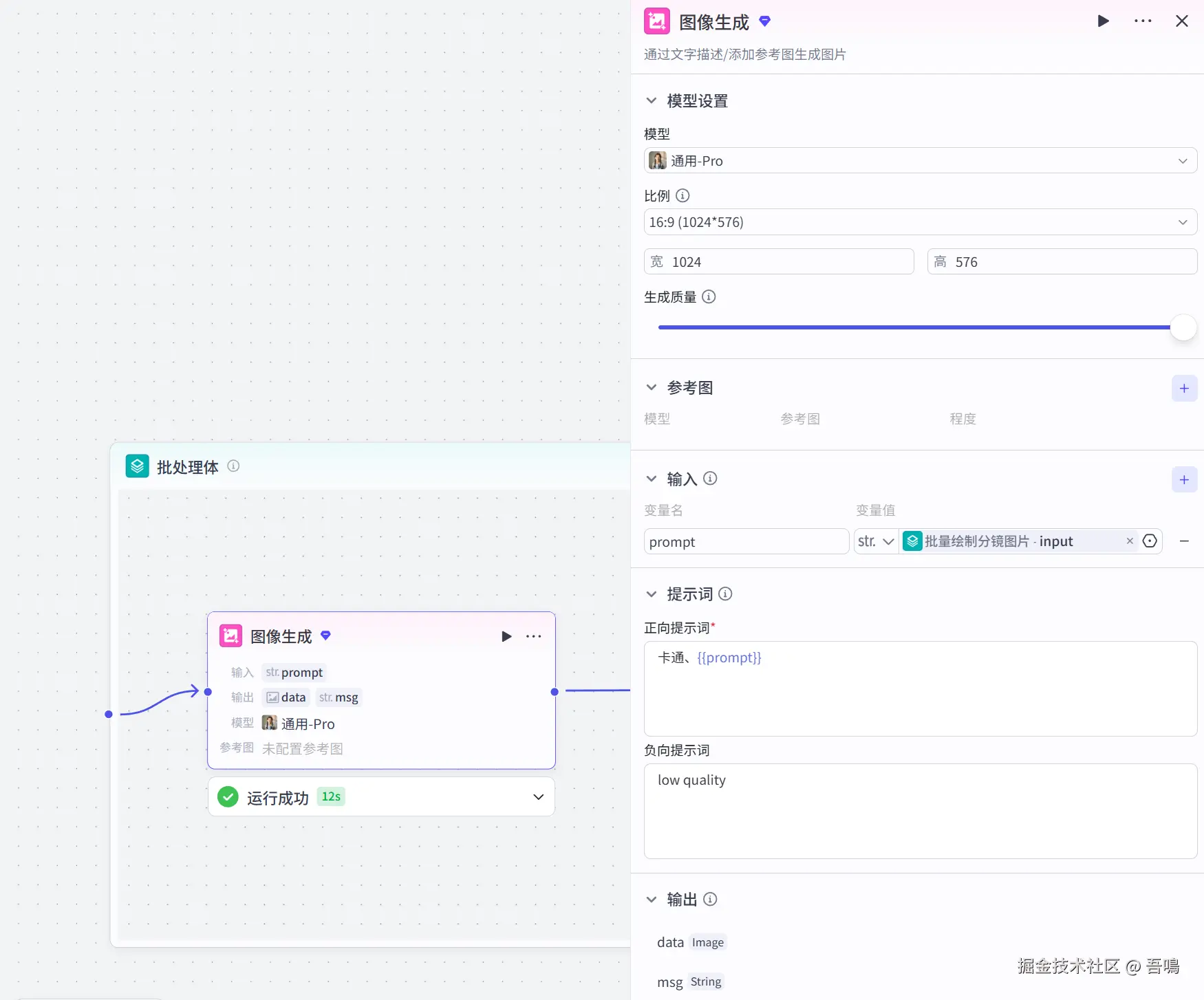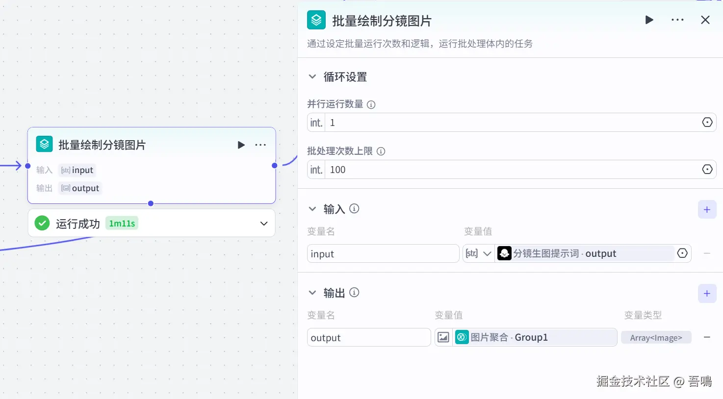 这个节点使用到了扣子官方的【批处理】节点,用于批量绘制分镜图片。