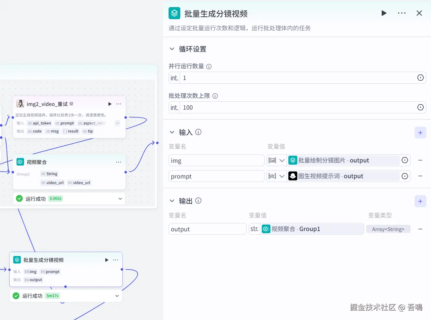 这个节点用到了扣子官方的【批处理】节点,用于批量生成分镜视频。