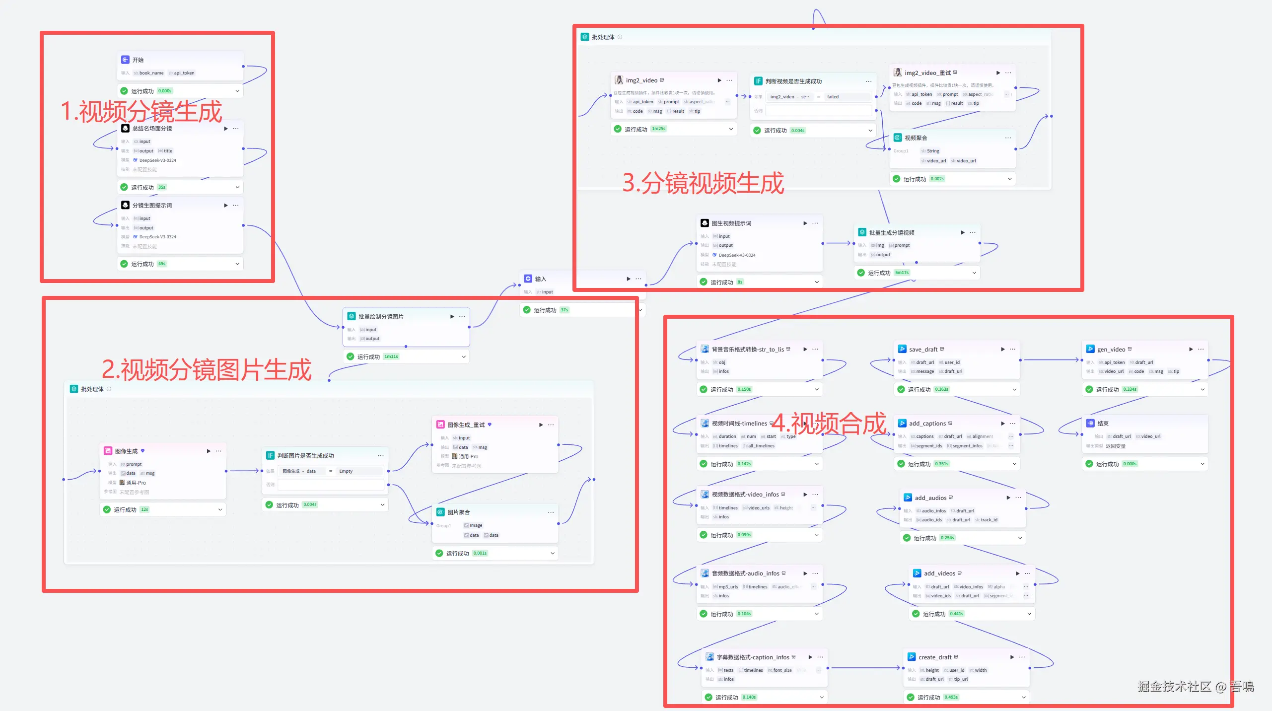 下面的工作流详细节点解读部分,我会按照视频分镜生成、分镜图片生成、分镜视频生成和视频合成这四大部分展开介绍,内容比较干,建议先收藏再读。