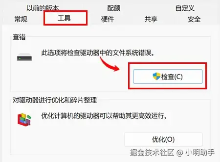 第3步: 在上方选择【工具】,在【查错】位置点击【检查】。