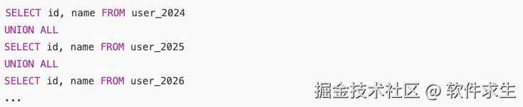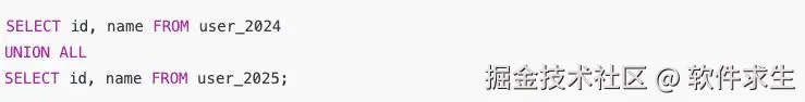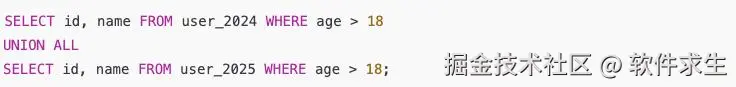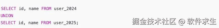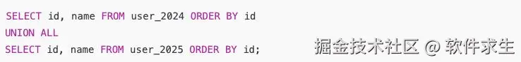 - 查询两个年度的用户表(user_2024 + user_2025),它们本身是分库分表的数据,根本不会重复。