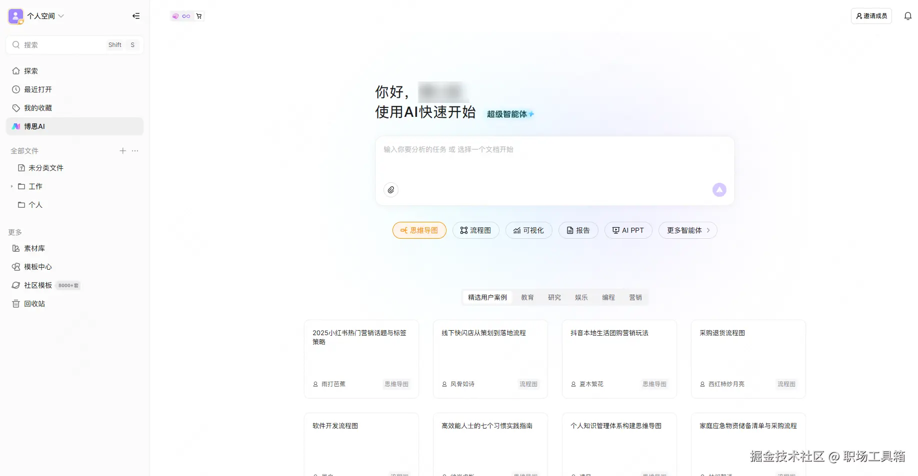 你可以像组建一支精英团队那样,在画布上同时调用多个AI智能体,让它们各司其职、合作无间,共同实现一个复杂的项目目标。这种工作方式非常适合需要进行头脑风暴、团队协作、可视化内容创作和项目规划等场景,对于追求创意和效率的团队而言,博思AI智能体无疑提供了一个具有代表性的高效范式。