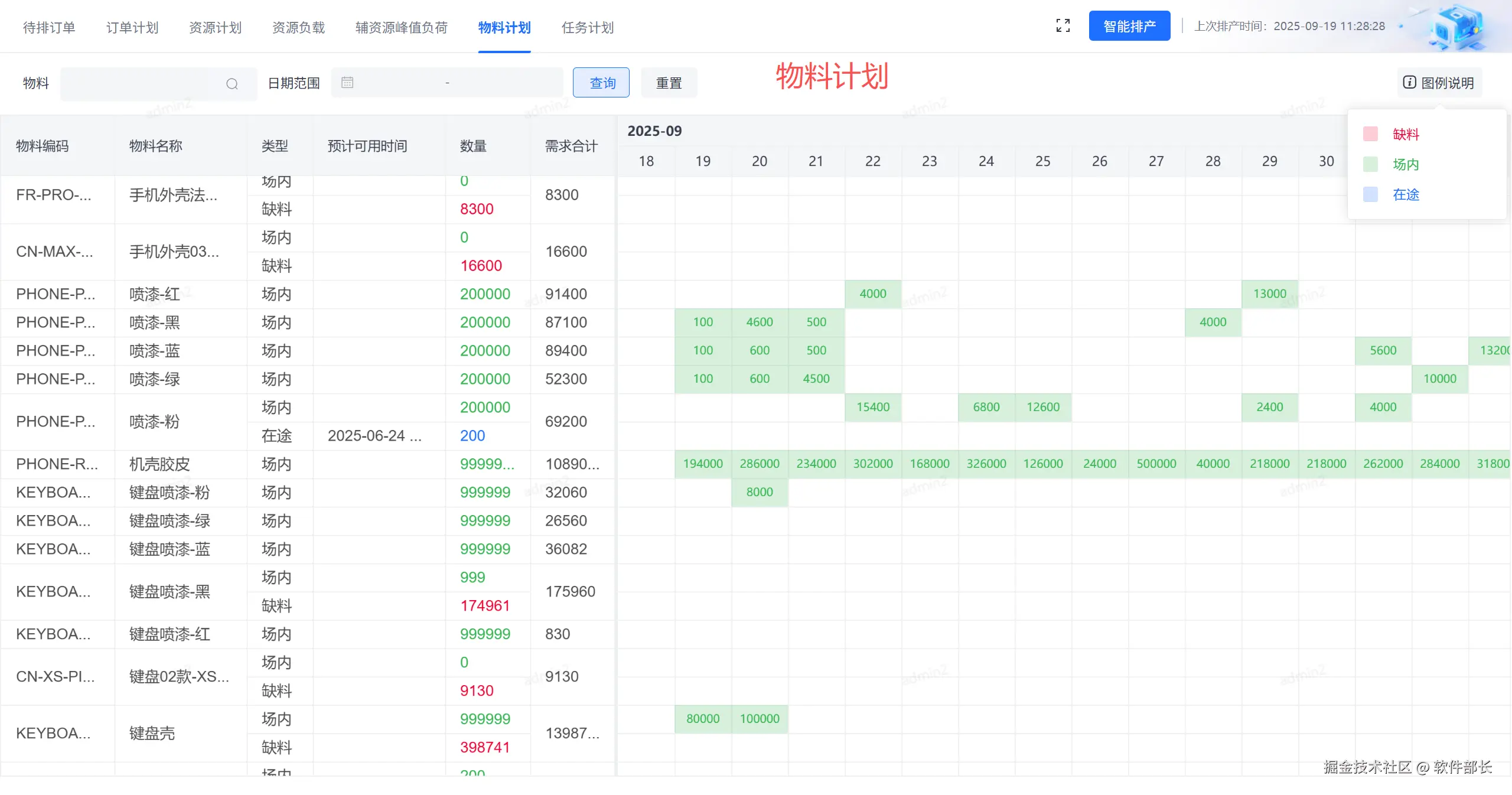 - 物料预测:可以防止库存不足,将所有来料计划集中放于一个列表之中,通过对订单号、排产状态等查找方式,可以在列表中快速查找出所需要的生产订单;