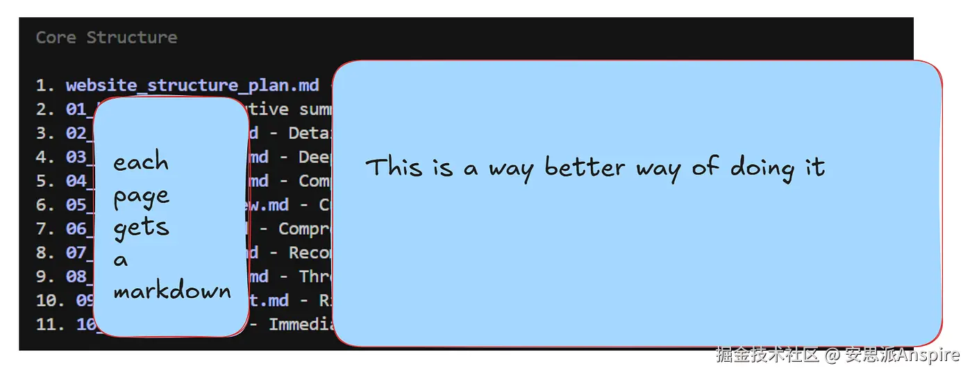 然后也为每个单独的页面在各自的 Markdown 文件中制定计划