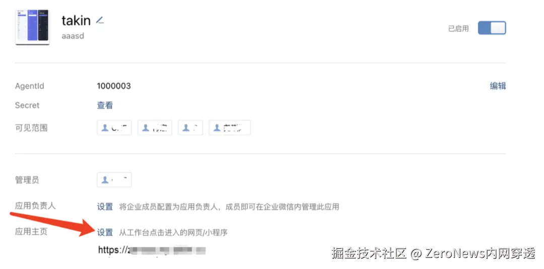 第 4 步:在企业微信上添加 ZeroNews 上的应用