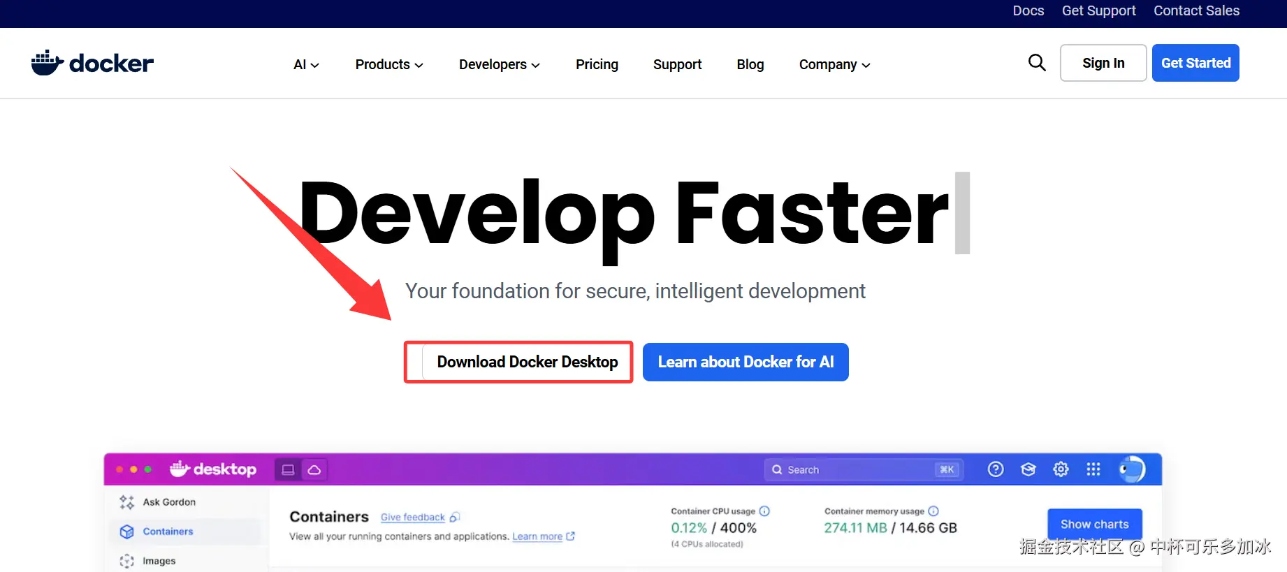 这里我们直接进入 Docker 的官网:www.docker.com/ ,选择Docker,Desktop点击下载