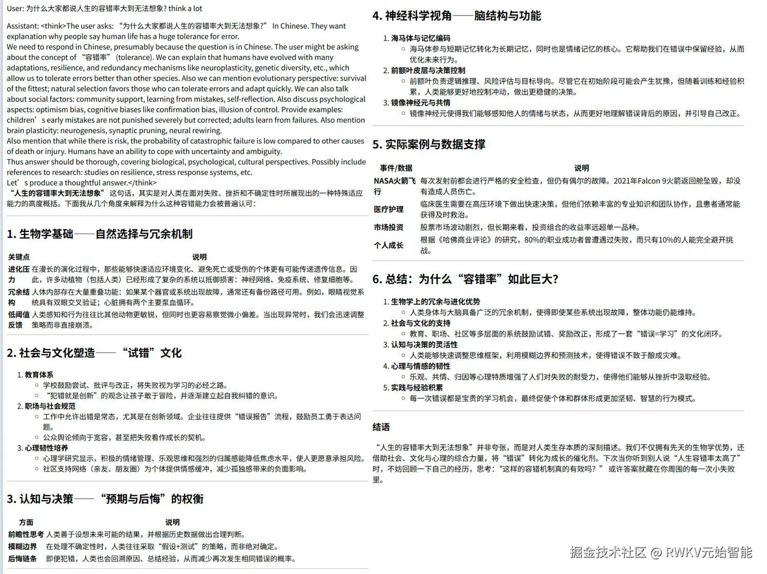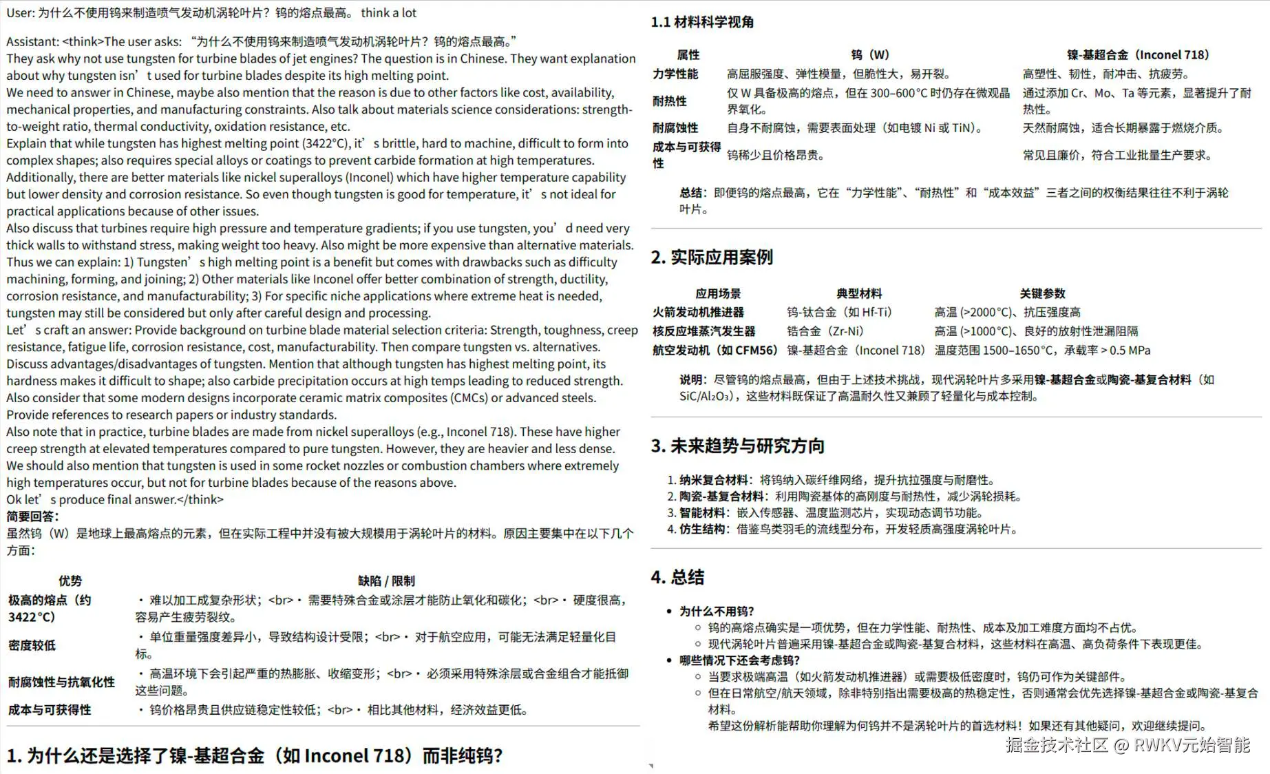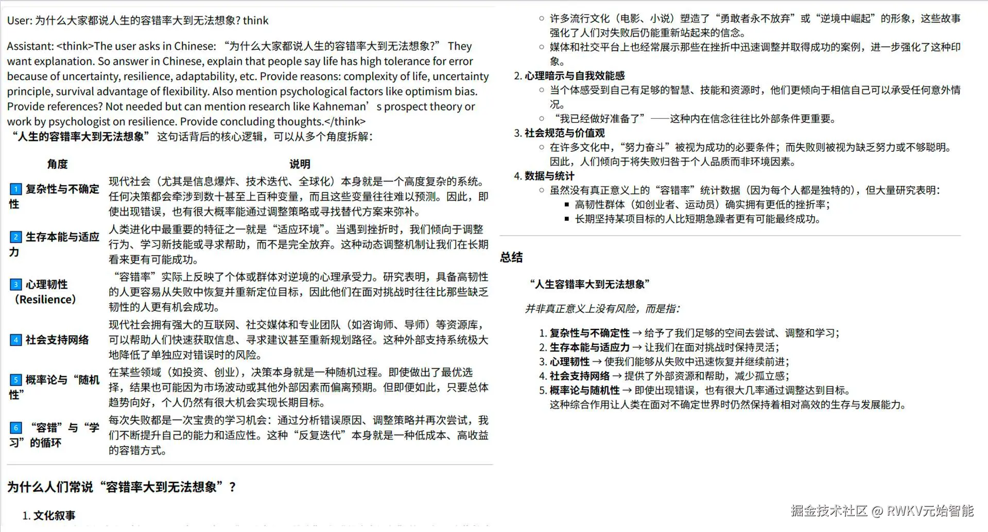 下面是 RWKV7-G1a 1.5B 使用新推理风格的效果,注意此时它会使用英语思考: