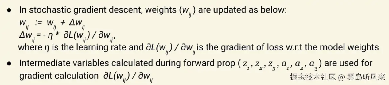 - 模型如何学习或训练通过将输入数据传递到网络来产生预测的过程称为前向传播。另一方面,调整模型参数以最小化误差(或损失)的过程称为反向传播。