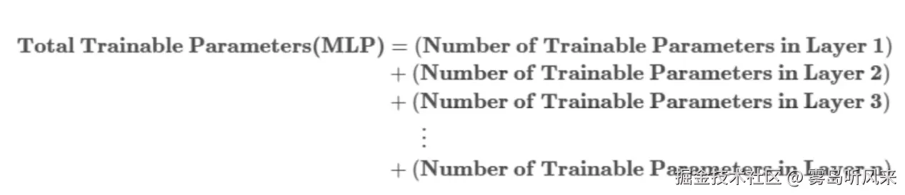 MLP架构中可训练参数的总数是通过对网络中所有感知器的权重和偏差进行求和来计算的——计算每一层的权重和偏差并将它们相加。