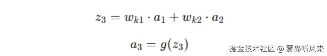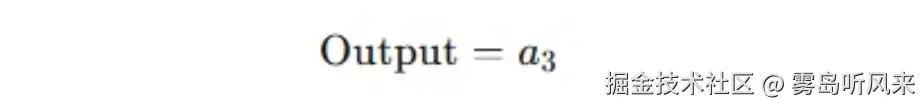 隐藏层神经元(a₁和a₂)的输出成为输出层神经元的输入。输出层神经元计算这些输入的加权和,然后应用S型激活函数产生最终输出。