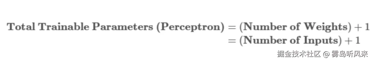 示例:具有两个输入的感知器有3个可训练参数——2个权重和1个偏差。