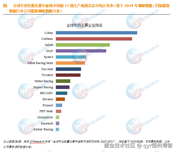 全球专业轻量化赛车座椅市场竞争激烈,未来,随着市场竞争加剧,行业整合或将加速。制造商将专注于通过并购、研发投入和品牌建设来提升核心竞争力。
