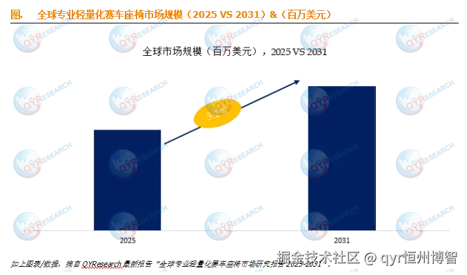 QYResearch调研显示,2024年全球专业轻量化赛车座椅市场规模为3.75亿美元,预计到 2031年将达到 5.33亿美元,2025-2031年预测期内的复合年增长率为5.2%。