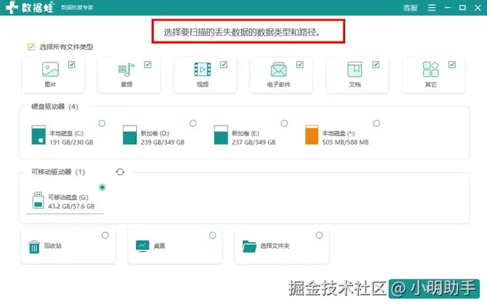同时它拥有强大的扫描能力,几十种文件类型说扫就扫;电脑内部硬盘,外部存储设备也能轻松扫描,是一款较为全面的数据恢复软件。