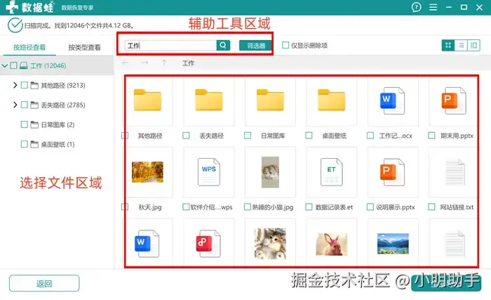 回收站清空了怎么恢复回来?选择该软件进行恢复,能够让我们更为高效快捷地完成数据恢复。如果还是找不到文件也没关系,可以选择使用软件的辅助工具进一步缩小搜索范围。