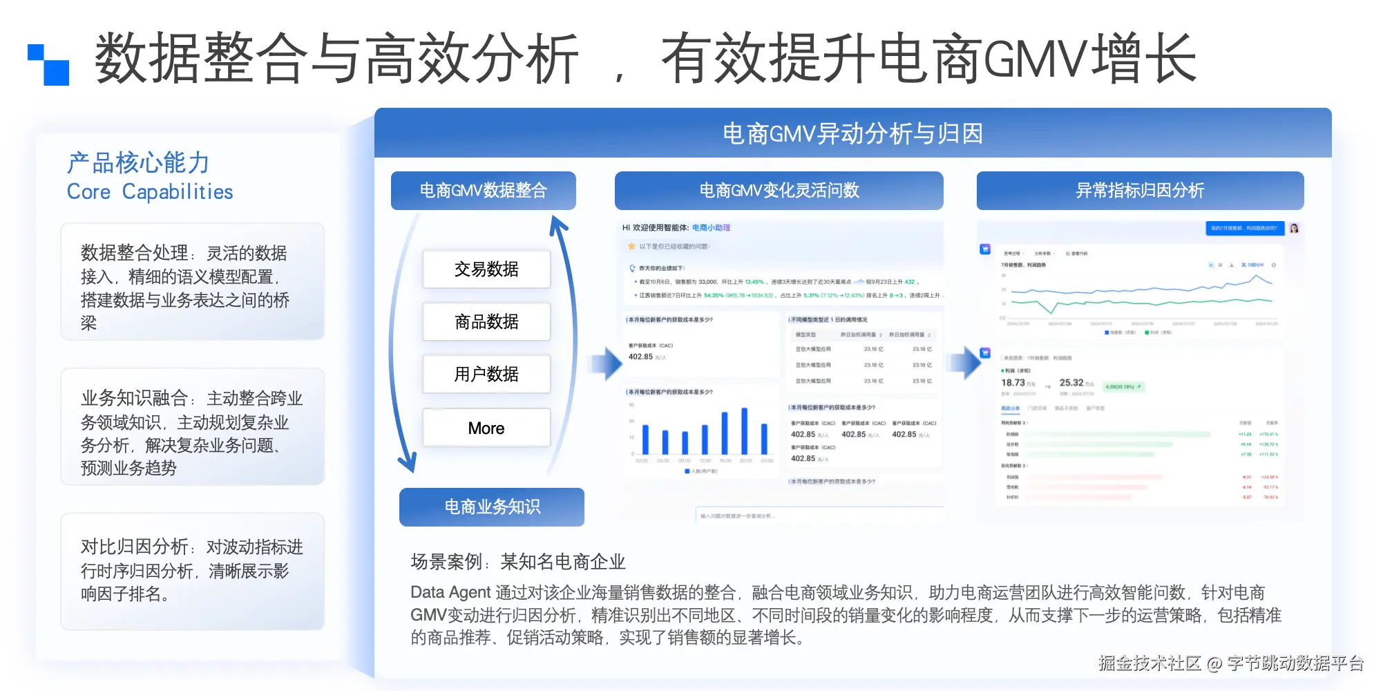此外,分析框架也需要专门沉淀,因为在拆解开放性问题时,模型的理解可能与企业惯用的分析逻辑存在偏差;还有领域常识,例如电商行业的“黑话”往往散落在飞书文档中,我们通过对接企业知识库,挖掘出这些“冰山下的知识”。