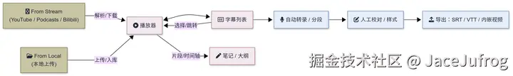本项目就是针对这一场景的解决方案,希望能在保留原始音视频的同时,提供字幕和结构化的笔记以供速览。