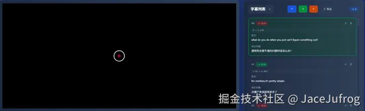 图1.项目截图:左侧播放视频(后端流媒体优化,4K,16G电影也能在10M/s的网速下流畅播放),右上字幕列表,可以点击列表跳转;右下为合集,可自定义