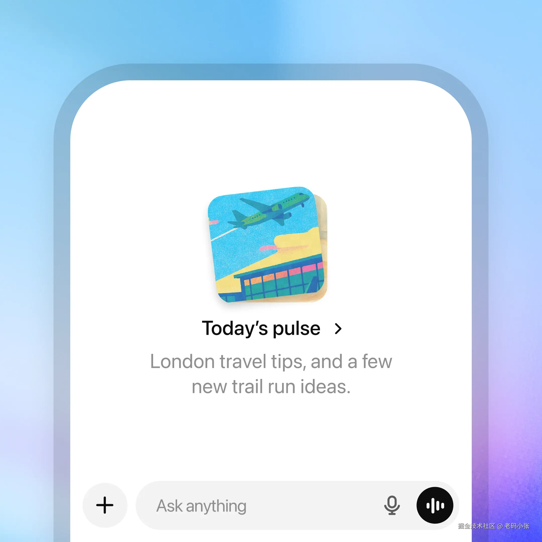 简单说,传统的 ChatGPT 是被动回答:你问它才能动。Pulse 把“被动”变成“半主动”——每晚做一次定向的研究,把你关心的主题和上下文(聊天记录、记忆、连上去的日历/邮箱)合成成一张张卡片,第二天早上送到你手机上。换句话说,它在帮你把“做功课”变成“每天的早晨摘要”,把你日常里那些小需求(旅行建议、下班菜谱、会议议程、训练计划)变成可扫视的卡片。对忙的人来说,这是效率的放大器。