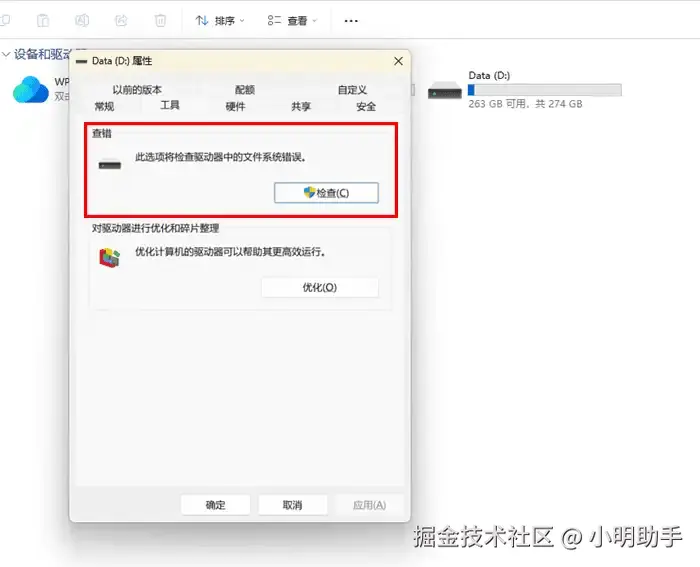 步骤2: 在【属性】功能页上的选项卡点击【工具】,最后按下【检查】按钮。